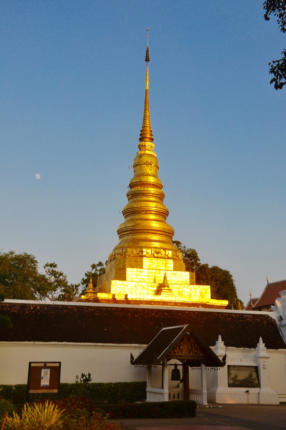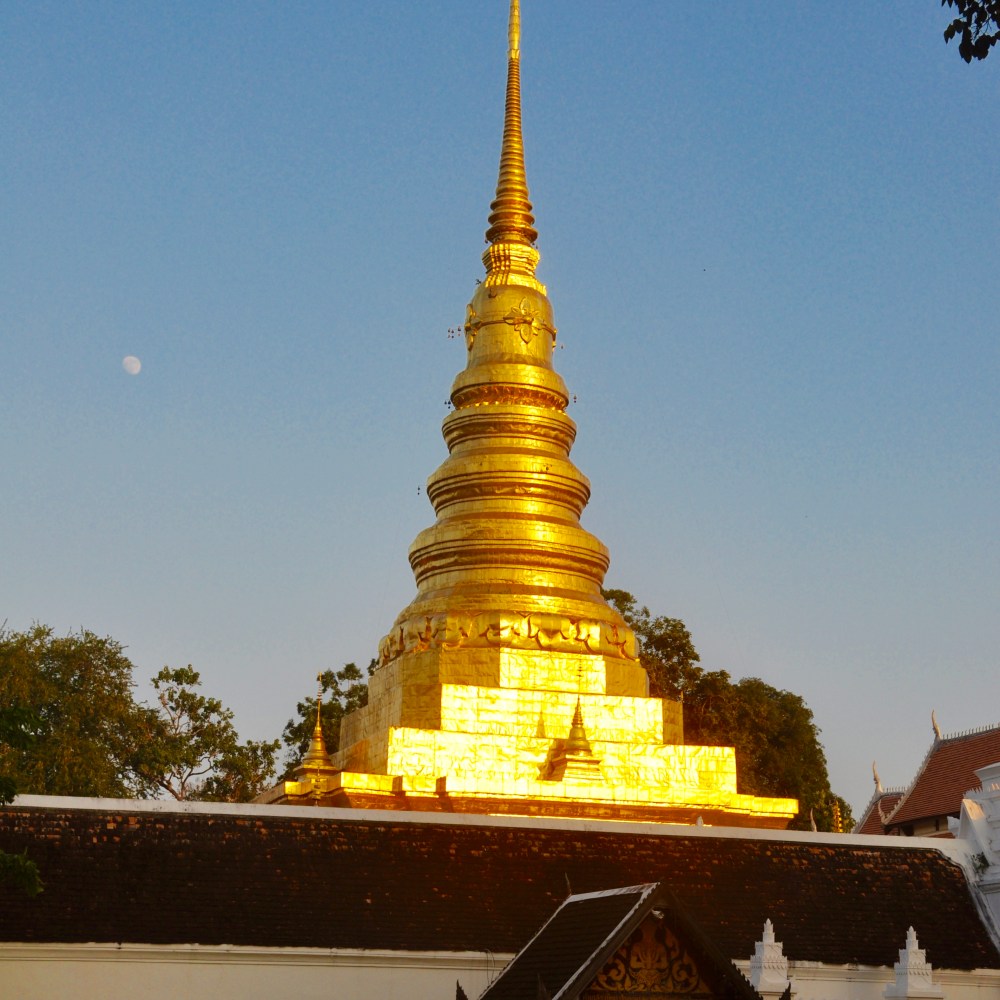 setting sun on chedi
