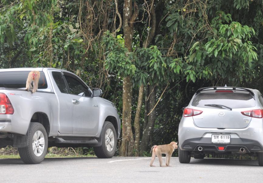 Stopped at some viewpoints, visitor center & waterfalls. Not many visitors, so very quiet in the park. Saw some deer and monkeys – but no wild elephants. The park covers an area of 2,168 km², including rain/evergreen forests and grasslands & at 1,351 meters high Khao Rom is the highest mountain within the park.