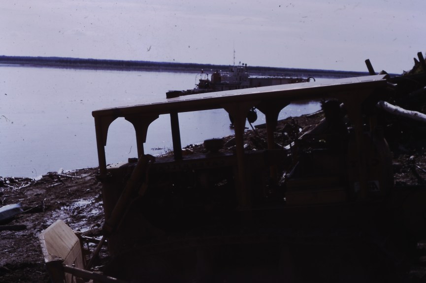 My time in Fort Norman soon became occupied with a short-term role with a local construction and transport firm (McPherson Construction) owned by a local. I was hired to run administration and logistics for the firm involving business management, bookkeeping, and managing the food and lodgings for his workers. We also managed general construction, building log buildings and freight handling for the local airport, summer and winter road maintenance, water delivery, and provided transport for goods arriving by river barge.