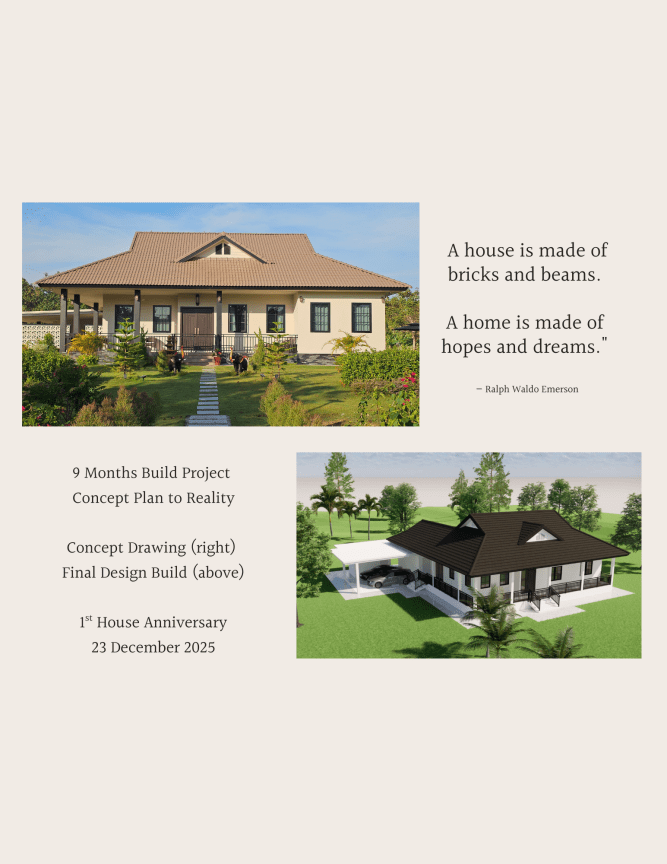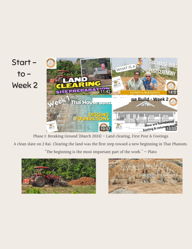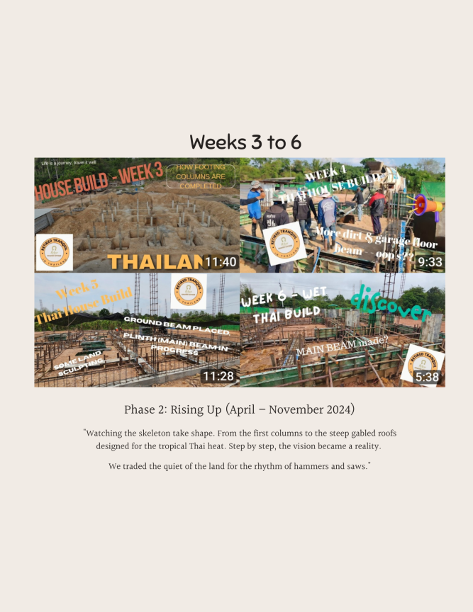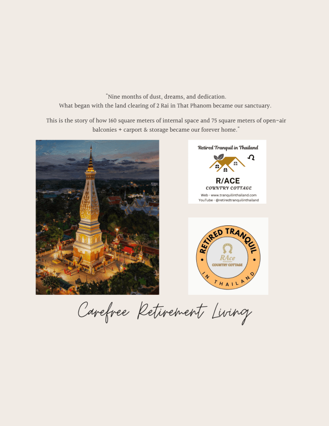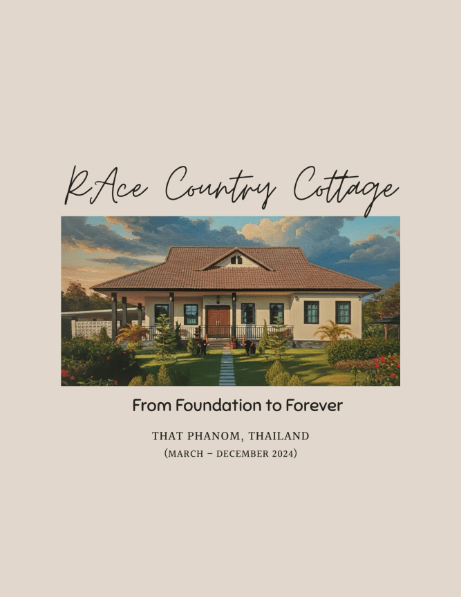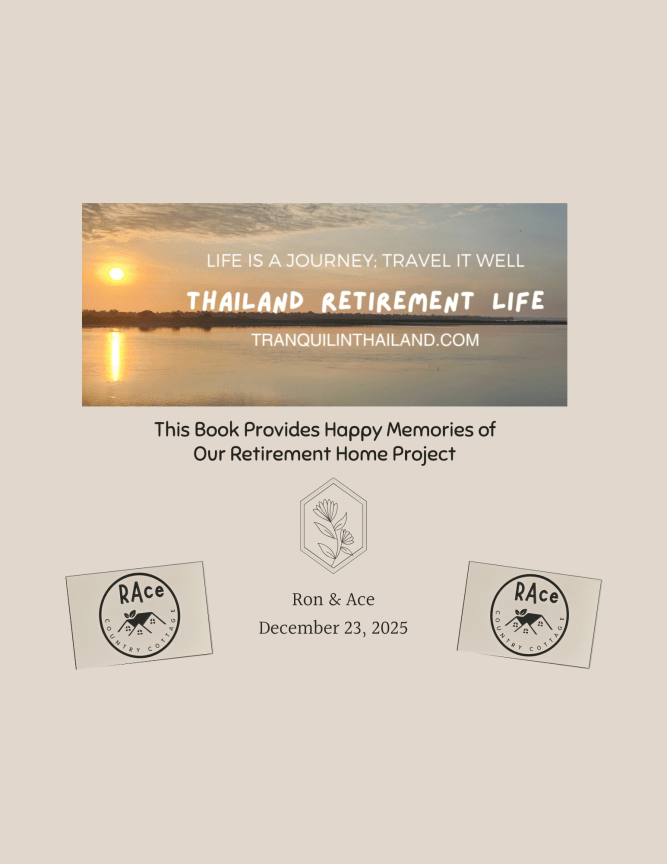 From raw land to our dream retirement haven: you can explore a 9-month journey building our Thai Country Cottage in That Phanom. This 42-page photo journal captures the incredible transformation from March to December 2024. Scroll through the pages to see how we turned a vision into our retirement home. The photos highlight the key construction phases, from groundbreaking to final finishing touches, through the hot and rainy seasons, culminating in the finished home.